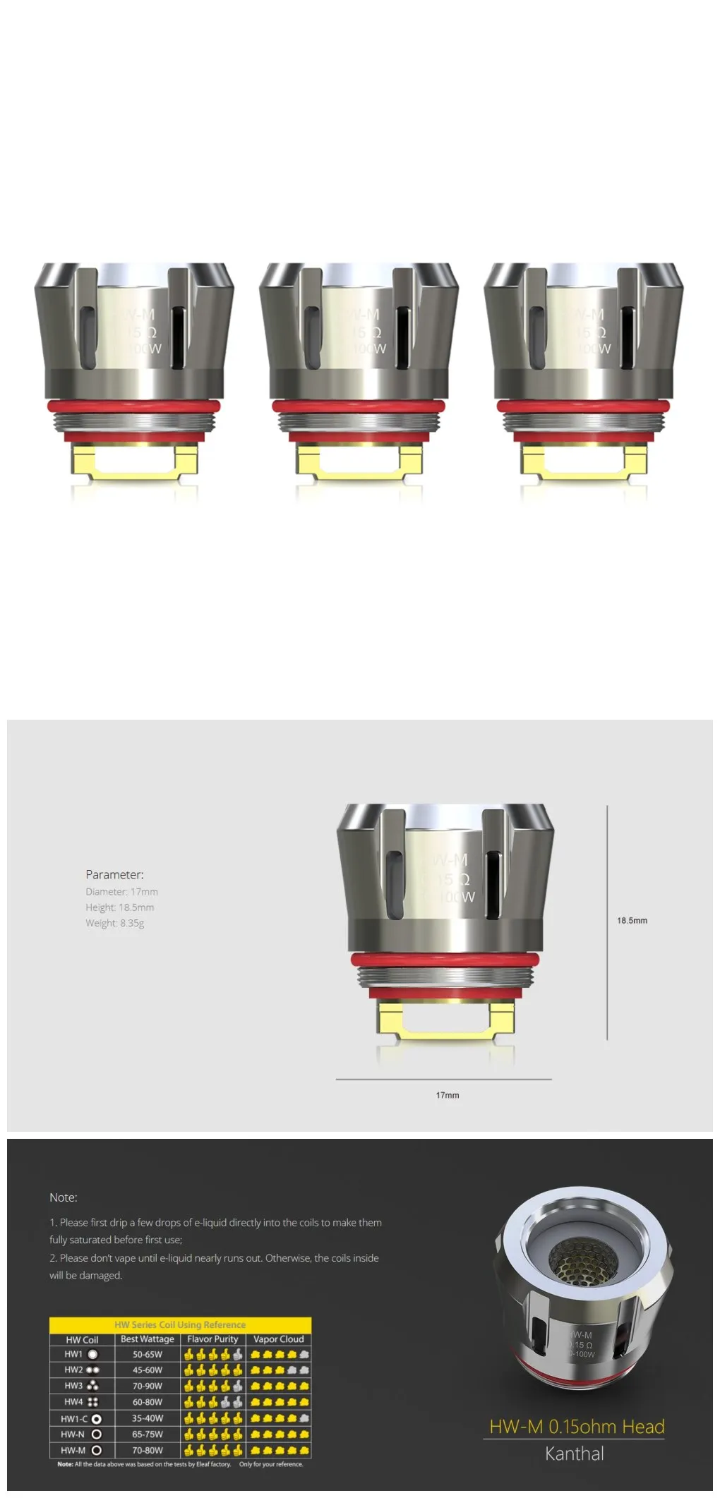 Eleaf HW-M Head Coil 0.15ohm Head features a new net coil technology, presenting an ultra flavorful taste with huge clouds and a longer lifespan than ever. It’s made of kanthal and is rated at 50-100 watts. Therefore, you must stock.