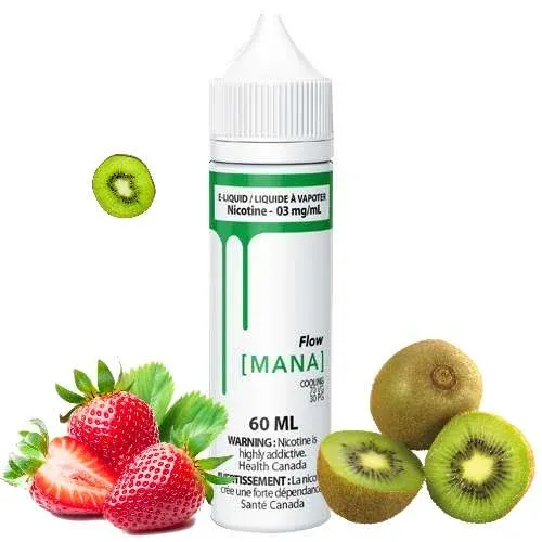 Flow – Mana, A new twist on a classic pairing. Flow is strawberry and kiwi blended to perfection to create the ultimate sweet and tart combination. As with any MANA product, its well-measured cooling properties combined with the smoothness of Salt NIX™ are sure to stimulate your taste buds and offer you a breath-taking refreshing experience.