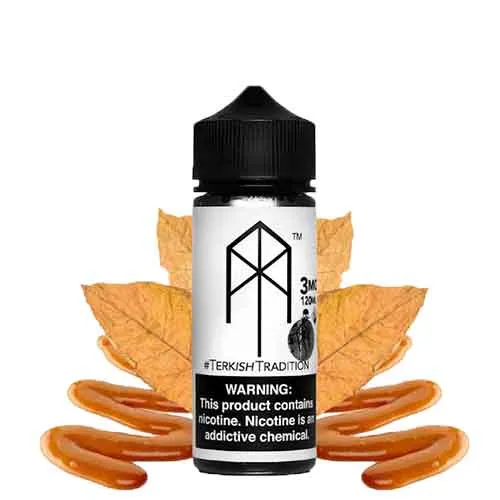 TERKISH TRADITION – M. TERK. With its distinctive blend of butterscotch and tobacco, Terkish Tradition by M.TERK E-Liquid is sure to satisfy your sweet tooth as well as give you the familiar earthiness of tobacco.