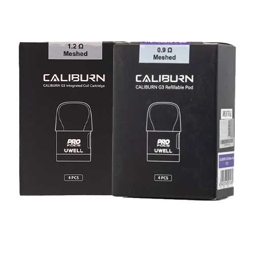 UWELL Caliburn G3 Pod Cartridge is a specialized component designed for use with the Caliburn G3 Pod System kit. With a capacity of 2.5 ml (INT./FDA) or 2 ml (TPD), these cartridges offer ample space for your e-liquid. The pod cartridges come in two versions, featuring FeCrAl Meshed coils with different resistances: 0.6 Ω and 0.9 Ω.