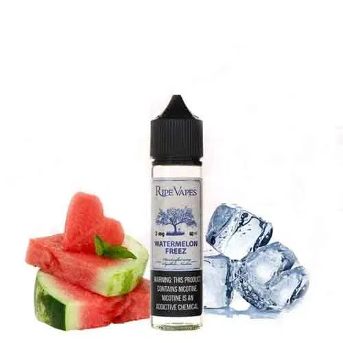 Watermelon Freez – Ripe Vapes. Ripe Vapes is taking a common summertime fruit and applying some extra iciness with Watermelon Freez By Ripe Vapes Synthetic Nic 60ml.